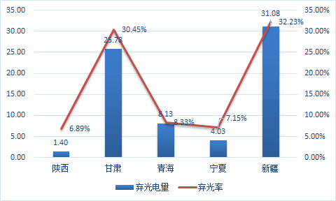 据数据显示,2016年我国光伏发电量287.17亿千瓦时,占全网总发电量的4.57%;利用小时数1151小时,弃光电量70.42亿千瓦时,弃光率19.81%。西北五省(区)中,新疆、甘肃光伏发电运行较为困难,弃光率为32.23%和30.45%。此外,宁夏弃光率7.15%,青海弃光率8.33%,陕西首次发生弃光限电情况,弃光率为6.89%。
