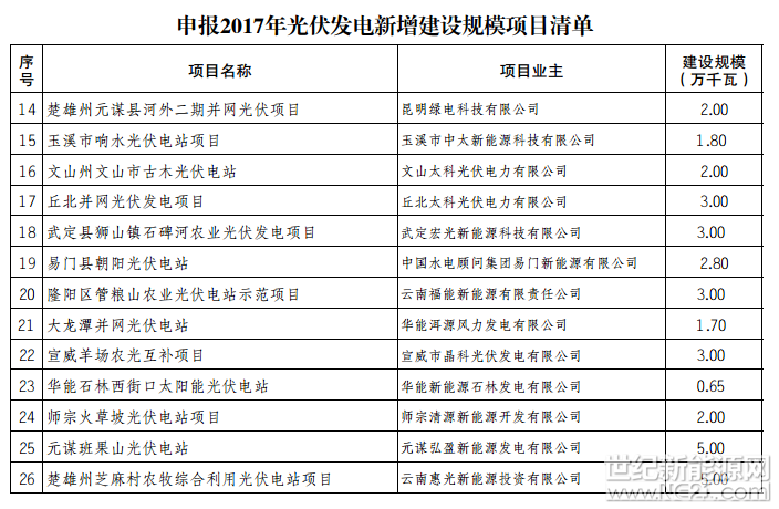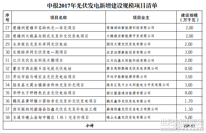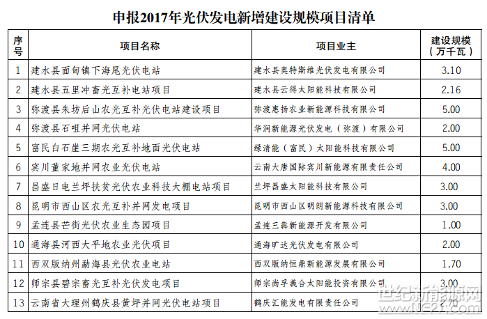 申报2017年光伏发电新增建设规模项目清单已公示期满,现印发2017年光伏发电新增建设规模项目清单,并将有关事项通知如下: