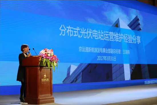 京运通新能源发电事业部常务副总王海燕在会上分享了分布式运维经验。2014年开始,京运通选定华为作为长期全面的合作伙伴,依托先进的智能光伏管理系统及组串式逆变器,实现了京运通分布式电站集中化/智能化/高效运维管控。