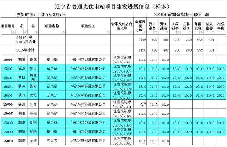 1.公开范围:2015年和2016年经全省各级能源主管部门备案的所有普通光伏电站项目