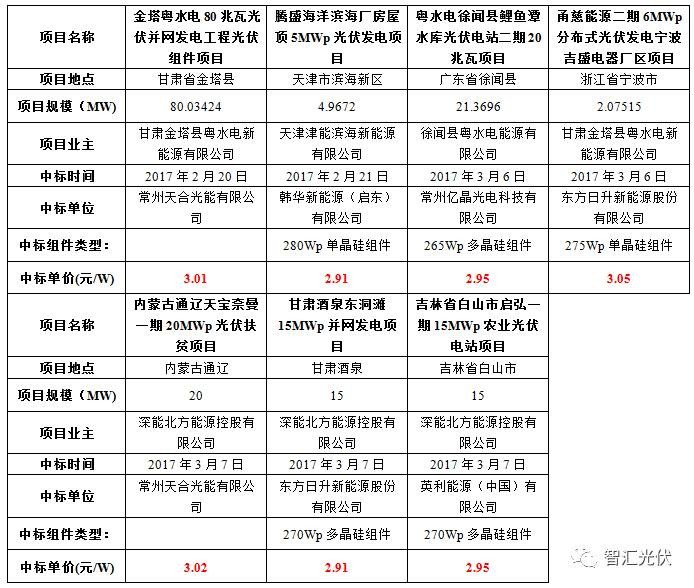 3月7日开标的中国国家电力投资公司1.1GW光伏组件招标中,无论是单晶或多晶,最低投标价都已跌破3元大关。