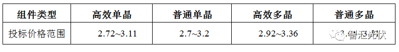 表 6:国电投1.1GW光伏组件招标的投标价格(单位:元/W)