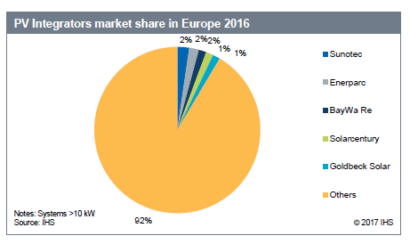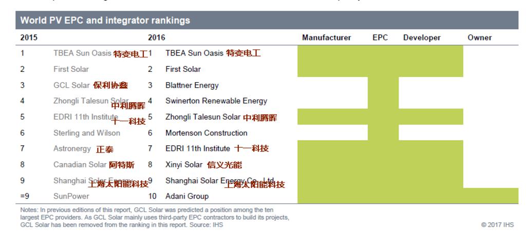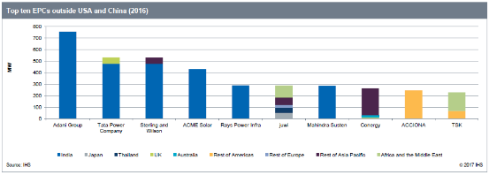 索比光伏网讯:日前,第三方机构IHS Marki发布了2016年度年全球光伏EPC市场分析报告。