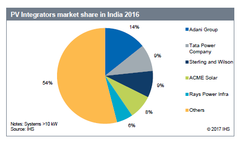 印度不断增长的光伏需求吸引更多的公司进入EPC行业,但市场仍然集中。