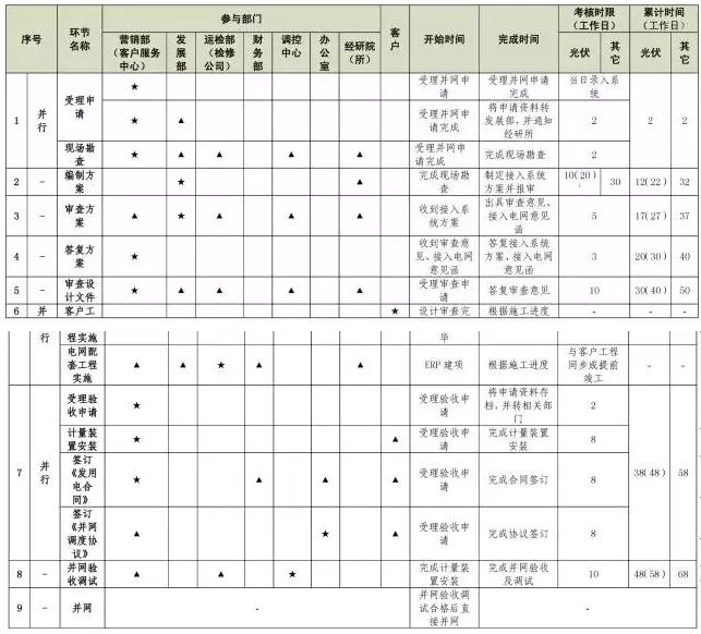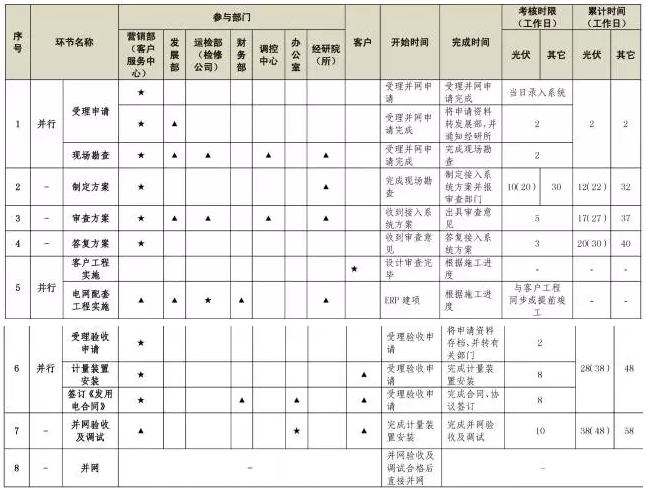 注: 分布式光伏发电接入系统方案编制工作实现,单点并网10个工作日,多点并网20个工作日