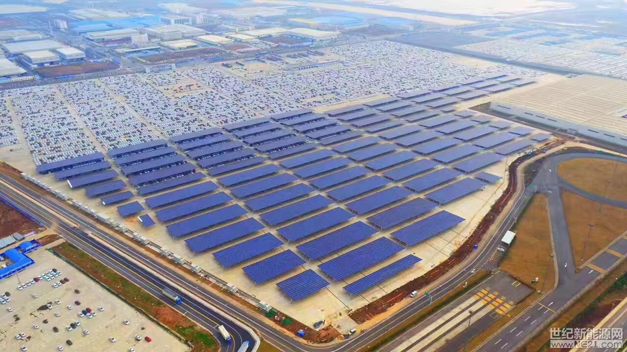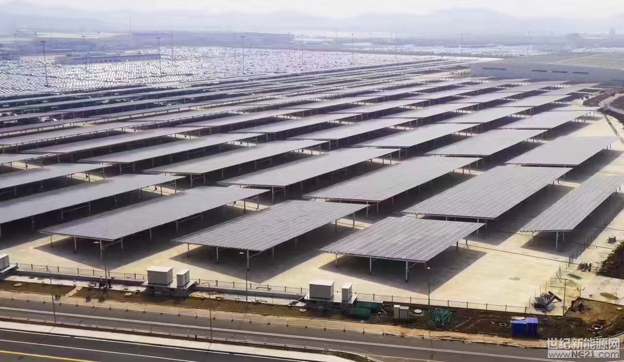 为突破这一瓶颈,上汽安悦节能将目光放在开发整车厂成品车停车库上。这种在成品车停车库建光伏车棚的技术,是在每个车棚下面装上一个汇流箱,车棚顶端的太阳能电板将吸收的电量统一收纳,再经过传输至逆变器将直流电变为交流电,最后通过增压器将电压变为10千伏,即可输送至电网内,完成发电。利用VDC停车库广阔的场地资源承载分布式光伏发电,不仅能有效解决光伏发电落地问题,还能将原本闲置的大面积停车库场地资源有效利用起来,达到经济效益最大化。上汽安悦节能技术有限公司总经理赵新红表示,“汽车企业它有广阔的厂房屋顶,整车厂都很大,还有很大的VDC停车库,我们首创在VDC停车库里面把光伏车棚搭好,打开了一片分布式光伏场地,解决了它的落地问题。”