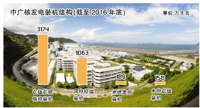 2016年,中广核清洁能源上网电量达1788亿度,等效减少标准煤消耗约5728万吨,减少氮氧化物排放约88万吨,减少二氧化碳排放约13985万吨,减少二氧化硫排放约137万吨,相当于种植39万公顷森林,其面积可覆盖两个深圳市。其中,核电上网电网1156亿千瓦时,同比增长30.8%。