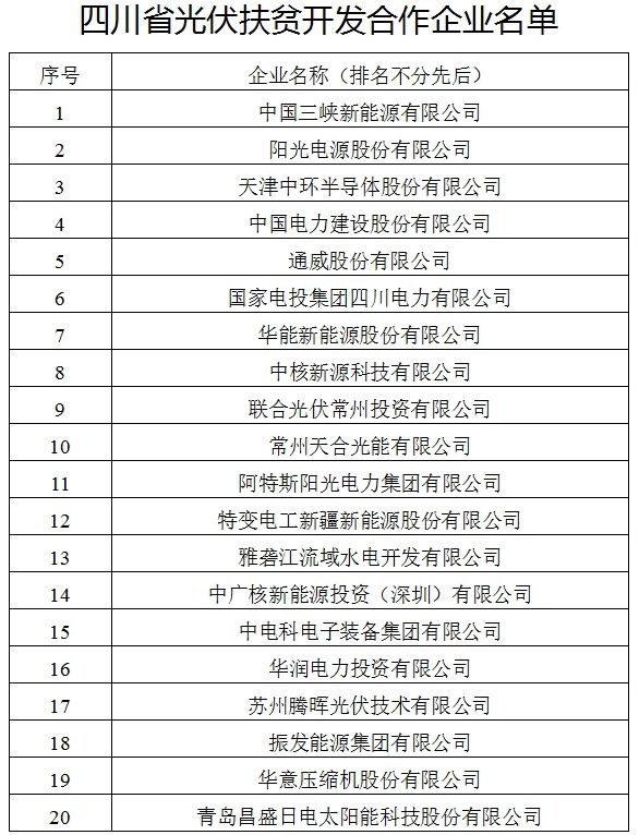 原标题:四川省光伏扶贫开发合作企业名单公示