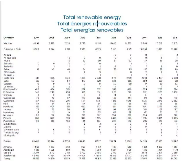 2016年全球新增可再生能源发电装机中有40%来自中国(+64GW)。到2016年底,全球可再生能源发电容量已经达到2006GW,其中中国为545GW,占27%。