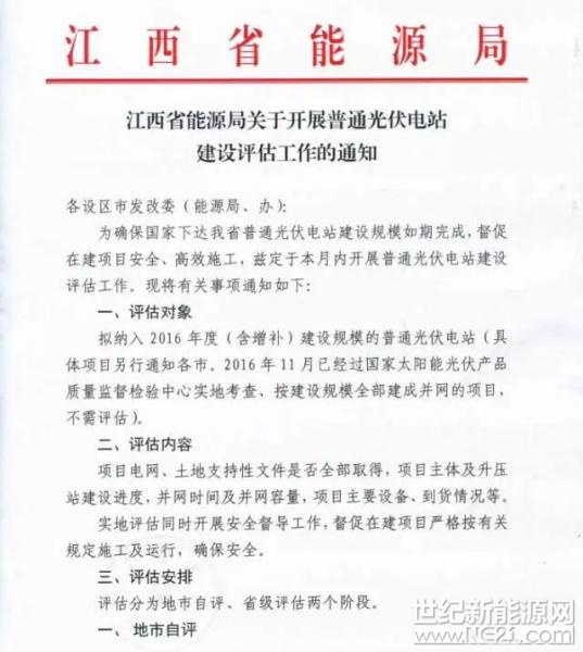 江西省能源局关于开展普通光伏电站建设评估工作的通知