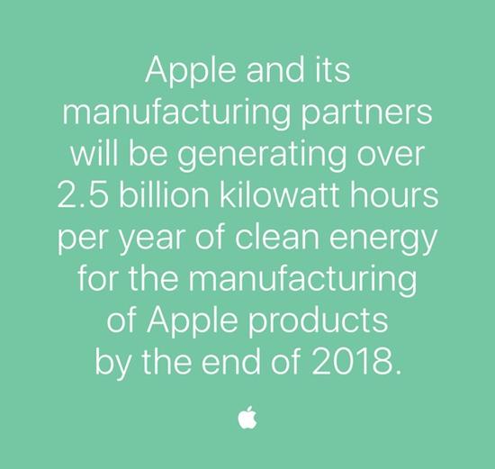 苹果自有设施所使用的能源有96%来自于可再生能源,而且其即将落成的新园区Apple Park也将百分百采用可再生能源。