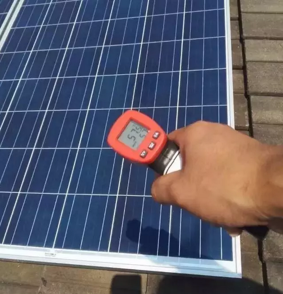 2016年7月24日,亚坦能源的工程师们测试了一组数据。上海的气温高达40℃时,光伏组件表面的温度为57.5℃,背板温度达到63℃(由于不方便拍照,所以没有图片记录)。