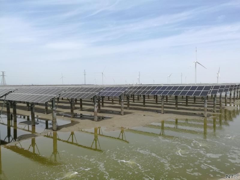 如东通威“渔光互补”项目占地面积2720亩,规划光伏装机总容量80兆瓦。目前一期工程装机规模10兆瓦已于2015年12月30日并网发电,至今已发电1718万度。水下养殖品种以鲻鱼、南美对虾、小白虾、梭子蟹为主,预期水产品总产量30万斤以上。每亩地的养殖收入和发电收入可达4到6万元,将土地综合效益提高10倍,提高了土地单亩立体利用价值,真正实现水上产出清洁能源、水下产出优质鱼、虾、蟹,农业与光伏高效协同发展。