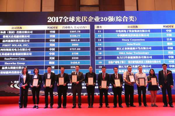 协鑫集团营业收入遥遥领先,在“全球光伏企业”及“中国光伏企业”两大榜单中均名列第一;协鑫新能源在“中国光伏电站投资企业”榜单中凭借2016年1876MW的新增光伏装机量荣列第二;协鑫集成以约4.6GW的组件出货量,名列“中国光伏组件企业”榜单第五。