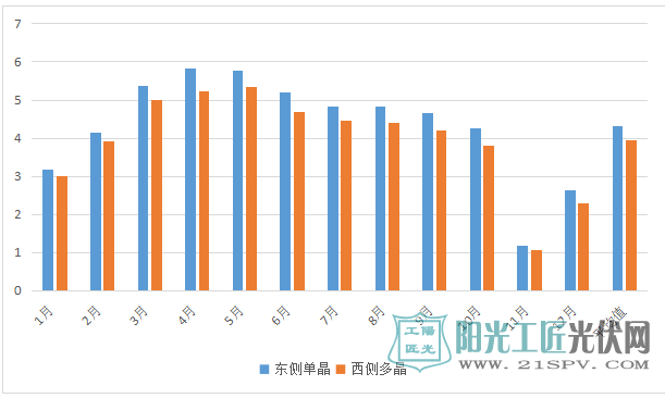 马明介绍,一般来说,光伏电站在最佳安装倾角的情况下,东侧别墅阳面的4千瓦电站到第三年的发电量理论值为5449度,西侧别墅阳面的4千瓦电站到第三年的发电量理论值为5146度。而实际上,这个实验电站每月实际发电量与理论发电量对比如下图: