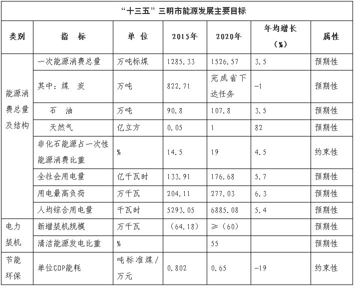 按照三明省打造东南沿海重要能源基地的目标要求,综合考虑资源、环境、安全、技术、经济等因素,结合发展实际,确定三明市“十三五”能源发展的主要目标是:
