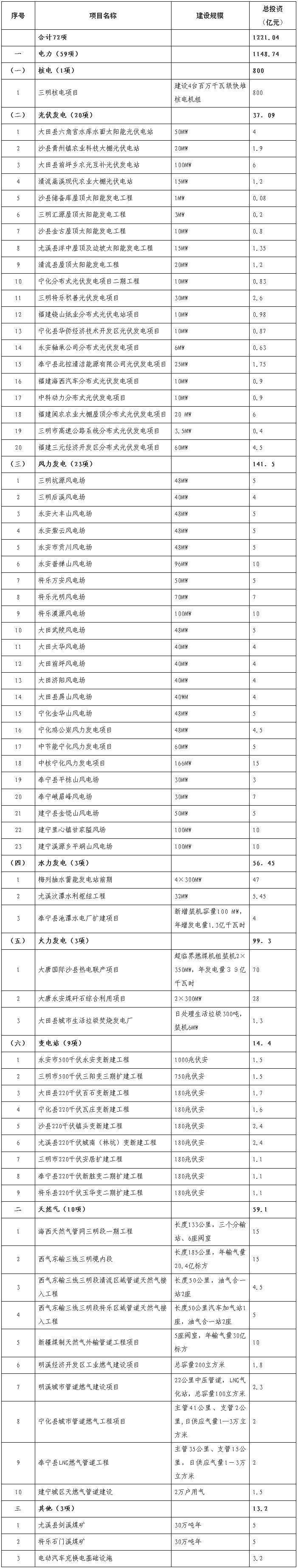 附件:三明市“十三五”能源发展专项规划重点项目库