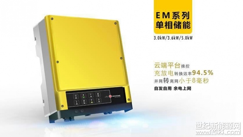 EM系列单相储能逆变器:是一款更加精巧、实用的储能逆变器,集成了光伏逆变器、电池充电器、电池放电模块、能量管理系统;电池的充放电功率都是2.5kw,逆变功率有3kw、3.6kw、5kw 三个功率段;兼容GCL、比亚迪、中兴派能、LG等多个电池品牌;同时具备并离网发电功能,且高频隔离,实用安全,绝对是户用储能的最好选择。