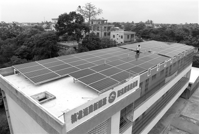 17日,雷州乌石镇那毛村那毛小学教学楼顶新安装的光伏发电设备。