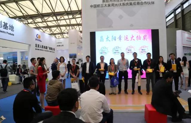 原标题:SNEC首日,三晶电气展位人声鼎沸,两位幸运观众成功将iphone7捧回家
