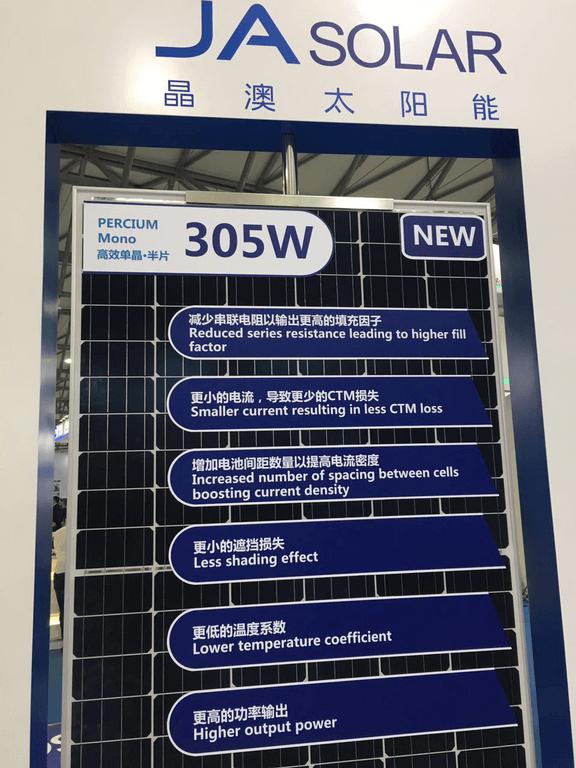 索比光伏网讯:4月19号,第十一届SNEC国际太阳能产业及光伏工程(上海)展览会暨论坛在浦东新国际博览中心开始了第一天的展览,众多光伏企业趁此大好时机纷纷推出了自己的新品,小编在人群中不断穿梭,终于为大家带了部份组件企业推出的全新光伏组件的相关信息。(PS:跑的最快的那个就是我,别怀疑)