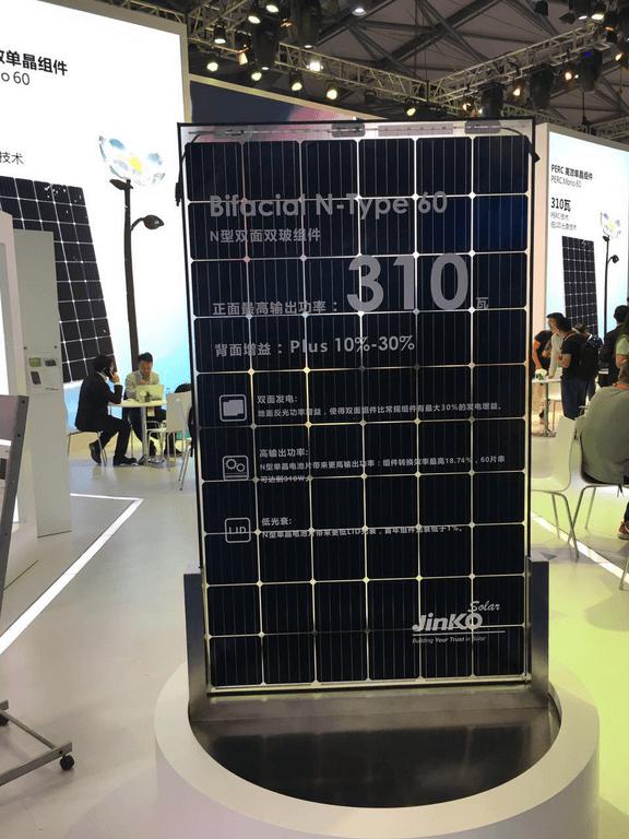 最高输出功率310W,背面增益10%~30%,转换效率可达18.74%