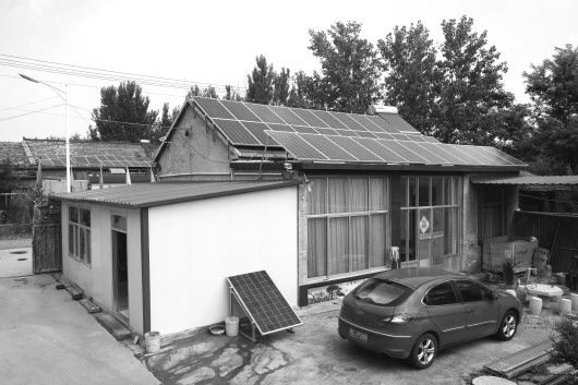 在农行信贷支持下,农户利用家里的房顶建成了微型太阳能发电站。