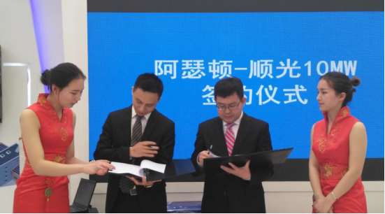 4月19日, “阿瑟顿-顺光10MW分布式项目签约仪式”在上海新国际博览中心隆重举行。会议由欧乐光伏网的金牌主编吴苏文主持,阿瑟顿新能源科技有限公司董事长李健与顺光太阳能科技有限公司董事长杜发伟出席仪式。