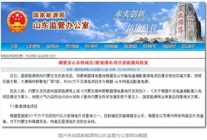 国家能源局向内蒙古发改委发函批准锡盟-山东线路时曾特别强调,“应积极利用锡盟丰富的新能源资源,支持规划建设风电和光伏发电。考虑能源结构调整和完成全国非化石能源比重目标的需求, 充分发挥火电的调峰能力,与风电、光伏发电打捆外送。”