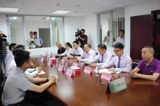 启动仪式结束后,安溪县领导洪龙与泉州农商银行党委委员吴志民一行进行亲切交流。总行党委委员吴志民就泉州农商银行近年来各项业务发展情况进行汇报,泉州农商银行作为深耕本土的银行,始终坚持“服务三农、助力小微、造福民生”的战略定位,立足县域经济,助力农民增收致富,持续发挥“小法人、大系统”的优势,坚持“不忘初心,顺势而为;行稳致远,砥砺前行”的经营策略,全力以赴打造“四好银行”,积极助力地方经济发展。安溪县领导洪龙对泉州农商银行的发展思路和工作举措表示肯定和赞赏,希望安溪县支行能继续发挥自身优势,造福县域百姓,助推县域经济发展。