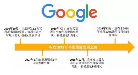 2016年12月6日,谷歌宣布将于2017年底实现100%使用可再生能源。作为世界上最大的可再生能源购买企业,谷歌从2007年起就承诺逐步开展可持续发展业务模式。