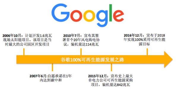 2016年12月6日,谷歌宣布将于2017年底实现100%使用可再生能源。作为世界上最大的可再生能源购买企业,谷歌从2007年起就承诺逐步开展可持续发展业务模式。