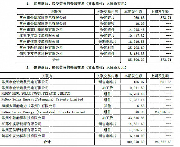 其次,本期海润光伏产生了多宗关联交易。而在这些关联交易中,海润光伏并不只是扮演者受益者的角色,其还给关联企业“投桃报李”。年报显示,本期,海润光伏与包括常州市金坛瑞欣光电有限公司等在内的7家关联企业产生交易,发生金额为10.2亿元,较2015年增长三倍。与此同时,海润光伏还向包括常州市金坛瑞欣光电有限公司等多家公司采购商品、接受劳务,发生金额约为8.6亿元,较2015年增加近8.5亿元。