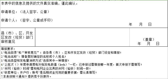 (7)填报《合肥市光伏电站度电补贴目录汇总表》(附件2)并加盖公章。