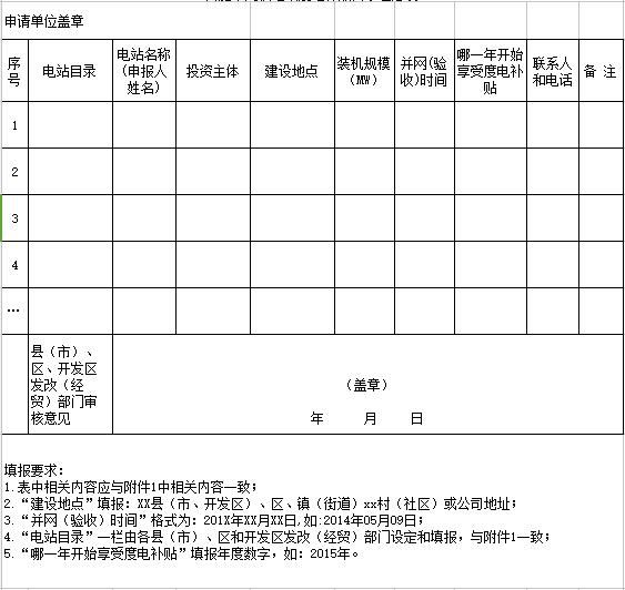 *(3)填报《合肥市光伏电站度电补贴目录汇总表》(附件2),并加盖公章。