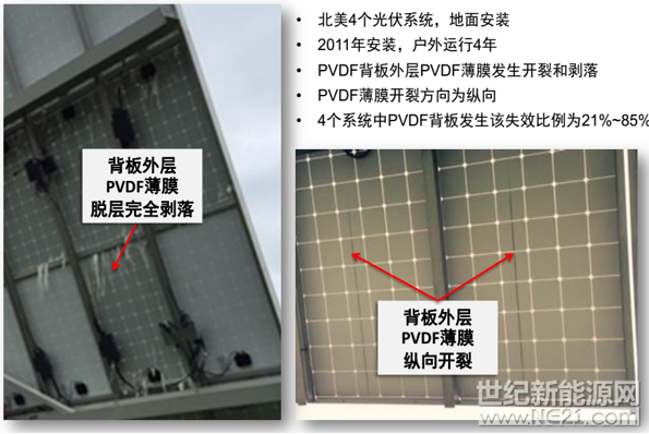 图2:户外使用4年的PVDF背板外层开裂形貌