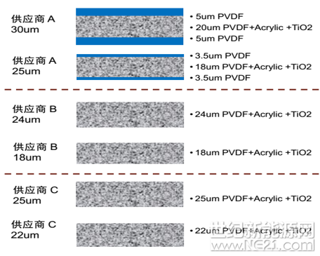 图3:不同供应商生产PVDF氟膜结构和厚度