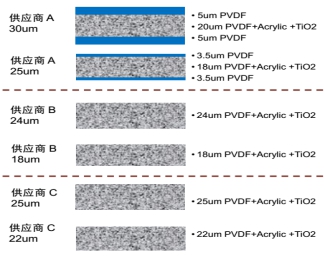 图3:不同供应商生产PVDF氟膜结构和厚度