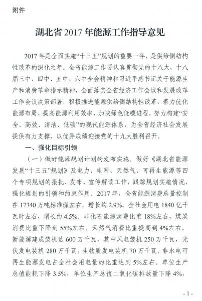 湖北省2017年能源工作指导意见