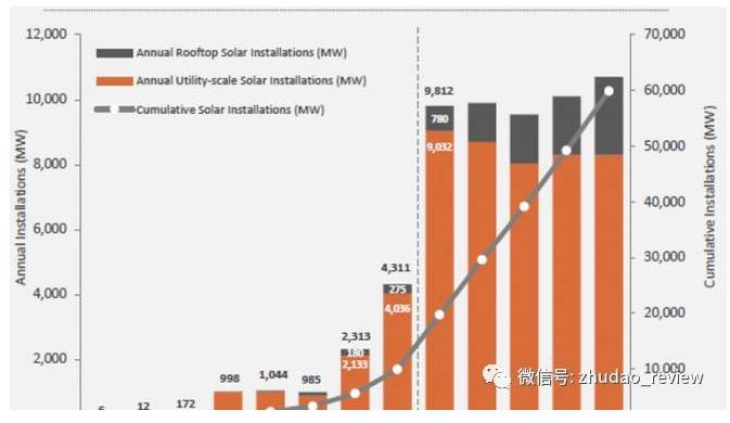 除此之外,根据相关媒体的报道,到今年年底,印度太阳能发电量预计将会增加10GW,如果按照这一预期,那么就意味着今年印度太阳能发电总量比去年增长了130%。而在此过程中,印度卡纳塔克邦、特伦甘纳邦和安德拉邦这三个邦的贡献最大。