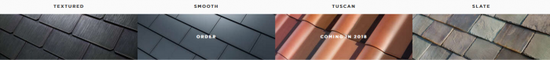 现在,特斯拉已经开始接受textured和smooth黑色款屋顶瓦片预定,另外两款则要等到明年。