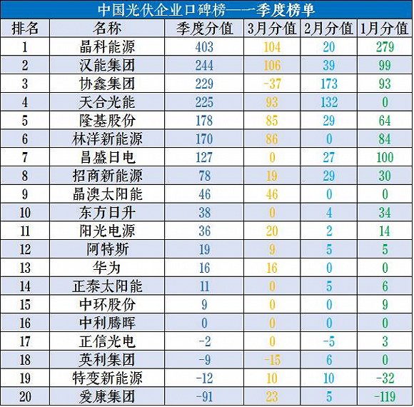 从2017年开始,中国能源企业口碑榜的光伏企业口碑榜,由月度发布改为季度发布。