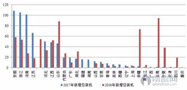 以下为2016年、2017年一季度各省市光伏新增总装机量对比: