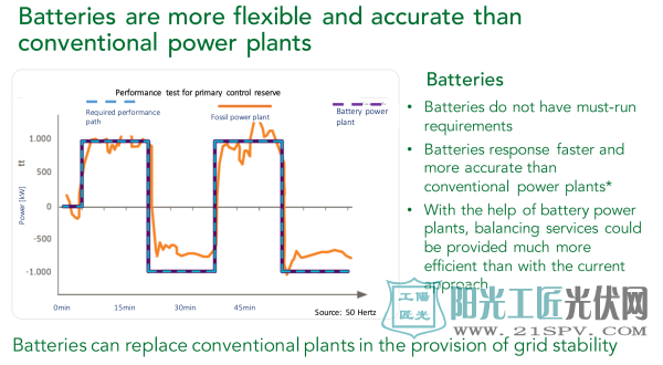 提高能源系统的灵活性有很多种支持技术:比如燃煤电厂的灵活性改造,增加燃气轮机灵活机组,开发支持能量灵活双向流动的柔性直流输配用电技术,以及部署储能。很多储能技术具有响应速度快,出力准确,可以为系统提供正负功率的双向调节等一系列优点,在增加电力系统灵活性方面具有很好的前景。因此,储能在电力系统中的作用不仅限于削峰填谷,为系统提供各种综合辅助服务可以更好地发挥其特长,而且更容易取得经济效益,美国PJM市场,欧洲电力辅助服务市场已经有相当多的储能提供综合辅助服务的实例,证明了储能在提供辅助服务、增加能源系统灵活性方面的技术和商业可行性。