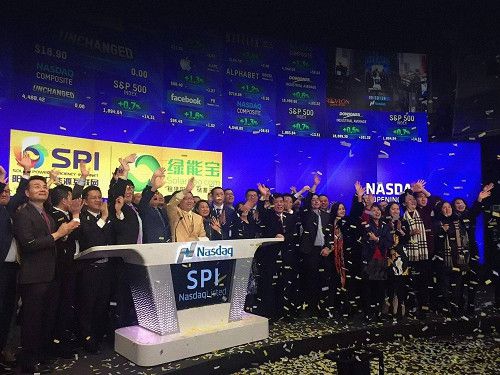 2016年1月19日晚,绿能宝母公司SPI转板登陆纽约纳斯达克市场,开盘交易价格为每股18.9美元。当日就跌破发行价,以16美元收盘。