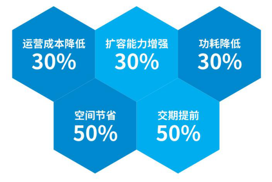 价值分析:模块化设计,降低客户时间成本;高能效的系统设计,低PUE值,节省能耗达 20~30%;减少日常运行费用,降低后期运营成本;缩短资金的占用周期及投资回报期。