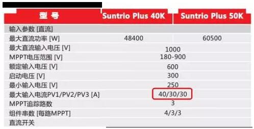 输入电流PV1:40A,PV2:30A,PV3:30A,即每一个组串最大输入电流为10A。