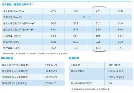 再看电池板参数,最大工作电流为8-9A左右,这就意味着,逆变器每对直流端子正好是接入一组电池板的。