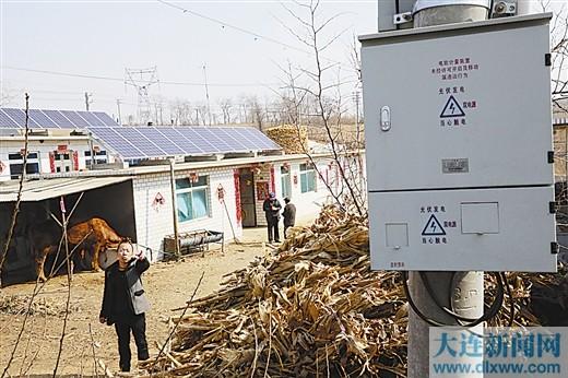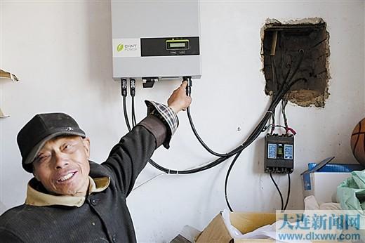大王屯70多岁的耿奎章老汉家里,前后两幢8间平房顶上安满了光伏发电板,记者走进院内,看到耿老汉的侄子耿长文正用光伏发电焊接农具,用粉碎机加工玉米面做猪饲料,井中抽水饮牛,叔侄俩高兴地说:“不光生产用电方便,家里生活用电,电视、电冰箱、电炊具……全部光伏发电。天气暖和了,光照时间长,一天能发38千瓦时电,夏天就更多了。全家一天能用十五六千瓦时电,剩下的卖给国家电网,一千瓦时电卖价7角9分钱,一个月能收入500多元。”