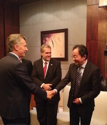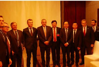 在“一带一路”国际合作高峰论坛大契机下,中利集团--腾晖光伏于2017年5月16日,在京出席了“一带一路”中国-阿根廷商务洽谈活动。期间,阿根廷总统毛里西奥·马克里(Mauricio Macri)先生会见了中利集团董事长王柏兴先生。参加洽谈活动的还有阿根廷胡胡伊省省长赫拉尔多•莫拉莱斯(Gerardo Morales)先生和随同访问人员,腾晖光伏副总裁刘永生、秦立俊和上海电建副总经理沈刚毅先生等参加了此次洽谈活动。